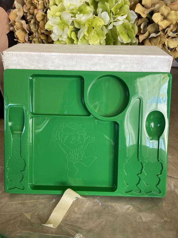 『Green Giant little sprout Dinner Ware Set With Box 1991 / グリーンジャイアント リトルスプラウト プラスチック製 箱入りディナーウェア セット』
