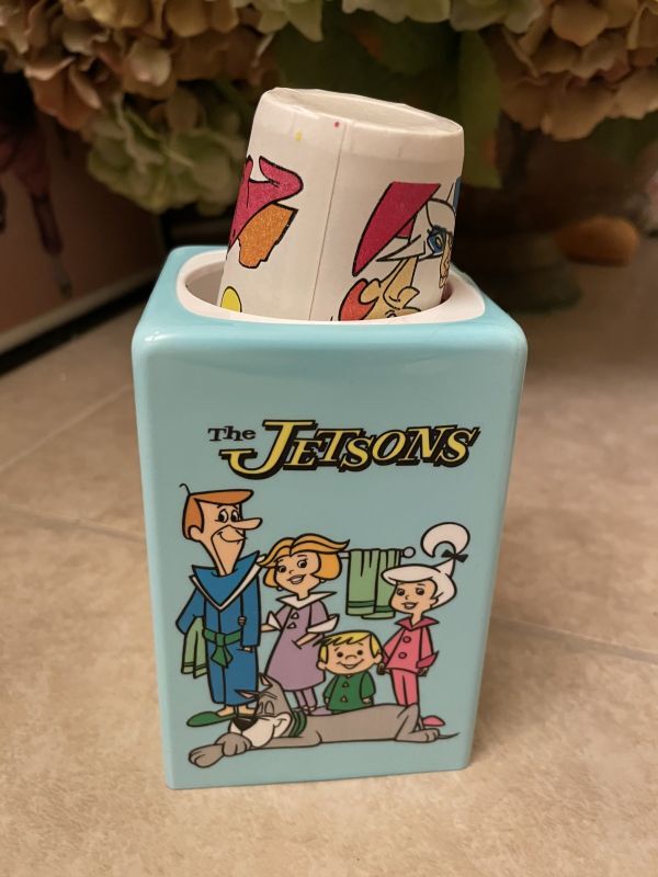フリントストーン&ジェットソンのキャラクター達がいっぱいのカップディスペンサーです。