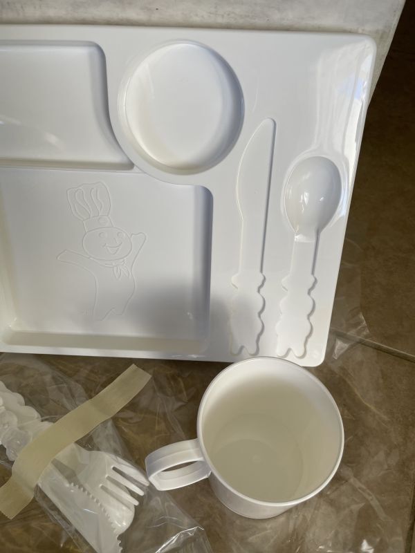 『Pillsbury Dough Boy Dinner Ware Set With Box 1991 / フィルズベリーのドゥボーイ プラスチック製 箱入りディナーウェア セット』