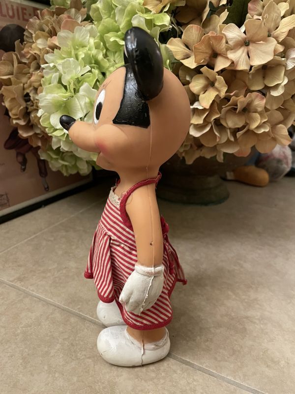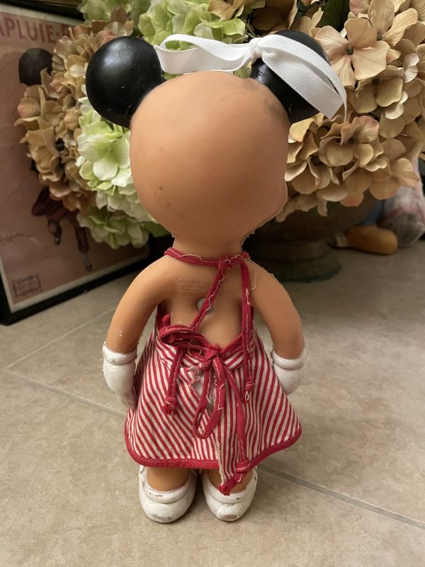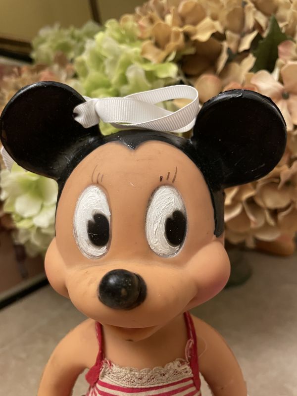『Disney Sun Rubber Minnie Mouse Vinyl Squeak Doll With Dot Cloth / ディズニー ミニーマウス サンラバー スクィーキードール』