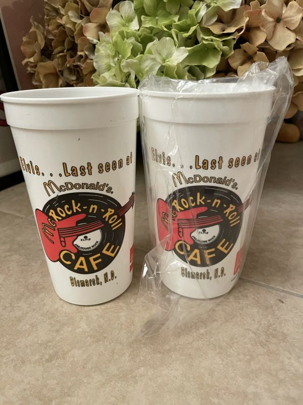 McDonald’s Rock n roll cafe Plastic Cup Set of 2 (L) 1991 / マクドナルドのプラスチック製、ロックンロールカフェ、コップ、2個セット