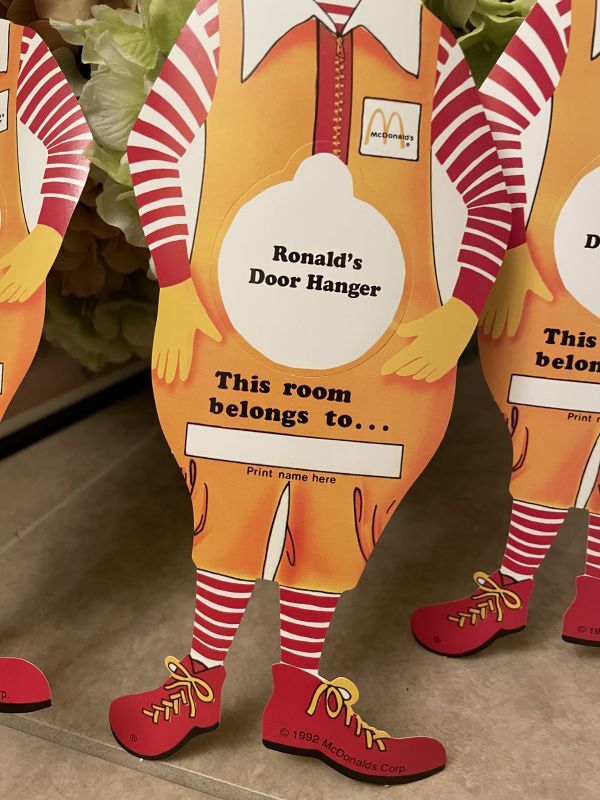 McDonald’s Ronald paper Door Hanger Set if 3 1992 / マクドナルドのロナルド 紙製 ドアハンガー3枚セット