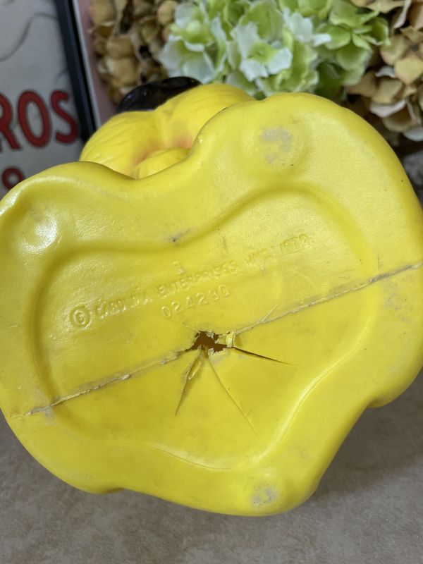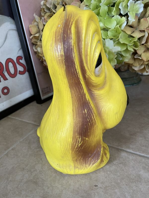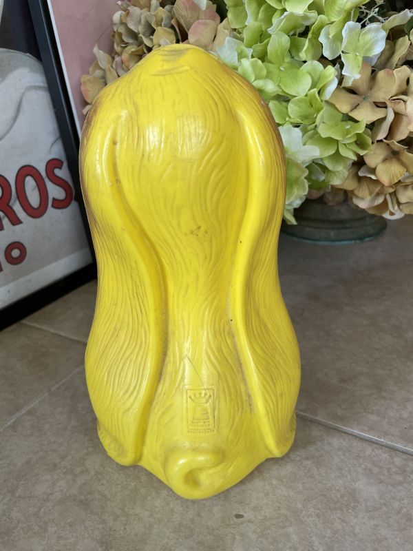 『Yellow sad face Basset Hound Dog plastic coin bank 70‘s / イエロー、サッドフェイス ドッグ 貯金箱』