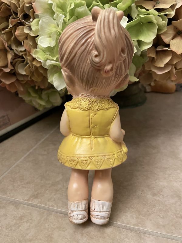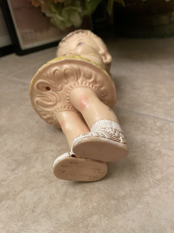 『Edward Mobley yellow cloth Girl Vinyl Squeak Doll 1958 / エドワード モブレイ社 イエローワンピースの女の子ソフビ、ラバードール 50年代』