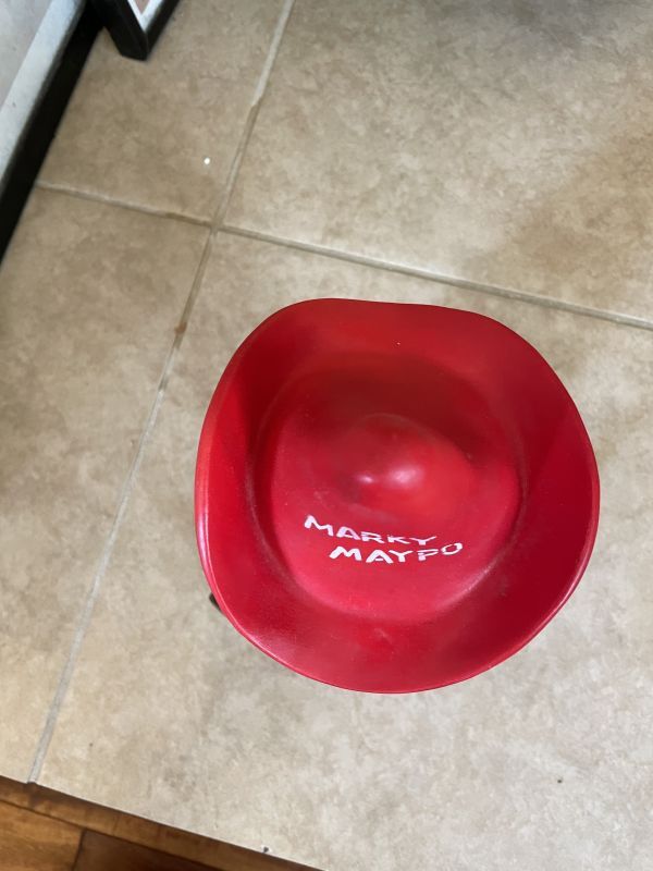 赤いとんがり帽子に赤のバンダナが印象的なマーキーマイポ君。