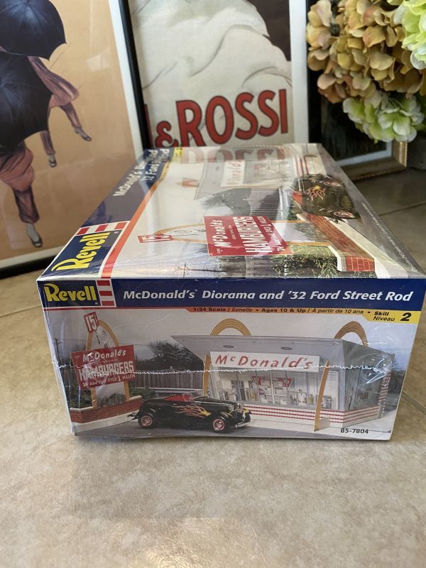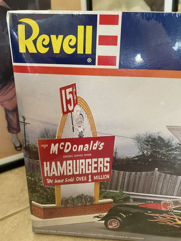 レベル社の箱入りマクドナルド ジオラマ&フォードストリートロッドのプラモデルです。