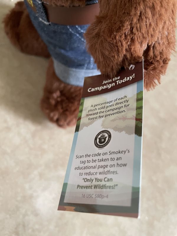 『Smokey Bear Plush Doll with hat, tag / スモーキーベア 帽子、スコップ、タグ付き、ぬいぐるみ 』