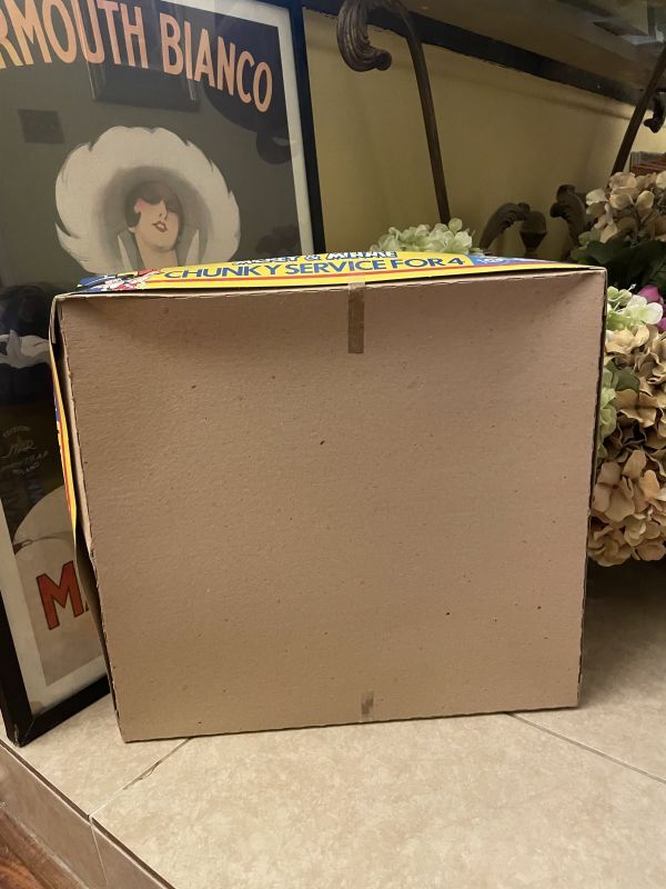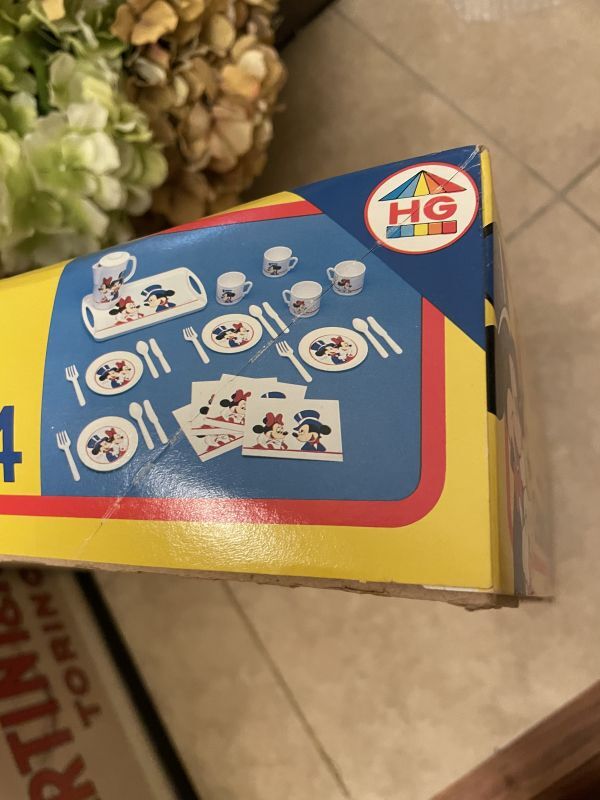 箱が少々壊れてますが(写真参考)ディスプレイする分には大丈夫と思います。今はなかなか探すのが難しいこのプラスチック製食器セットですよ!