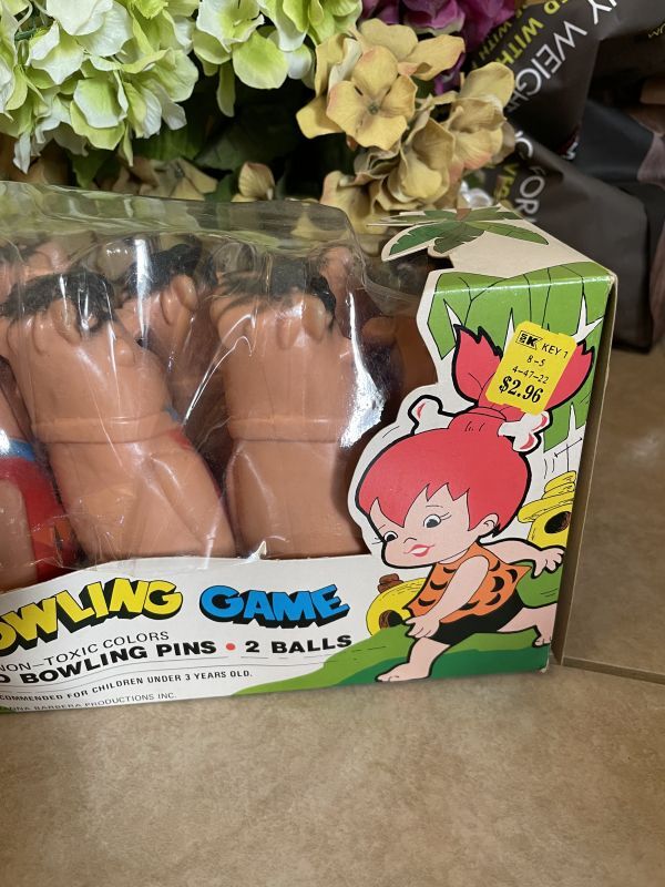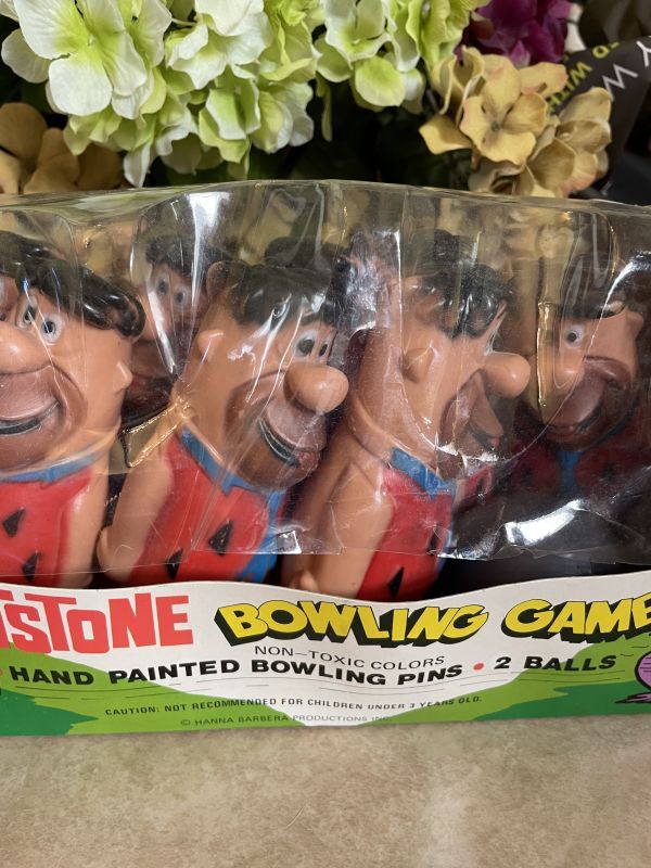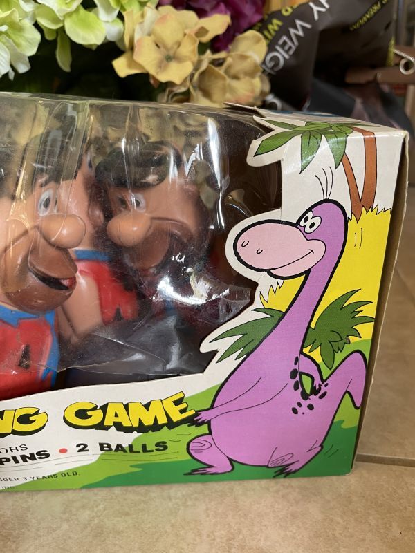 Hanna Barbera Flintstones Fred bowling Pin Game with Box 60‘s / フリントストーンズ、フレッドの箱入りボーリングピン ゲーム プラスチック製ドールピン [VF1686]