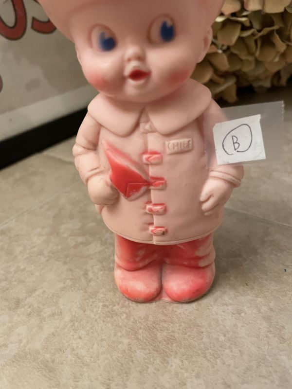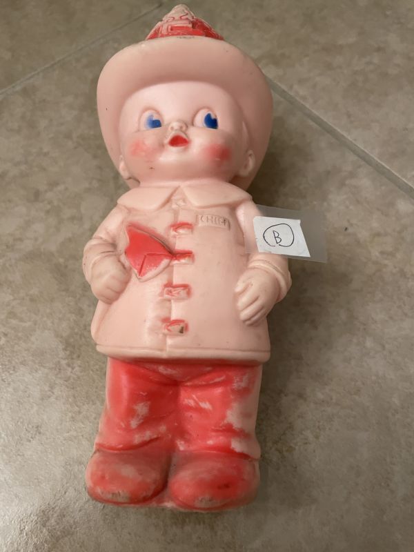Fire fighter Sun Rubber Vinyl Squeak Doll (B) / 消防士 サンラバー ソフビ、ラバードール