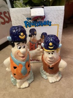 フリントストーンのキャラクター達の陶器製のソルト& ペッパー、塩コショウセットです。