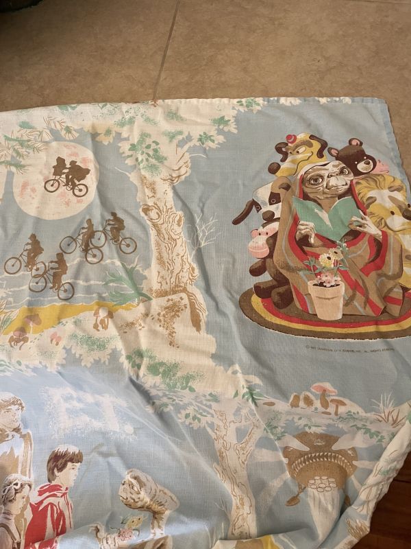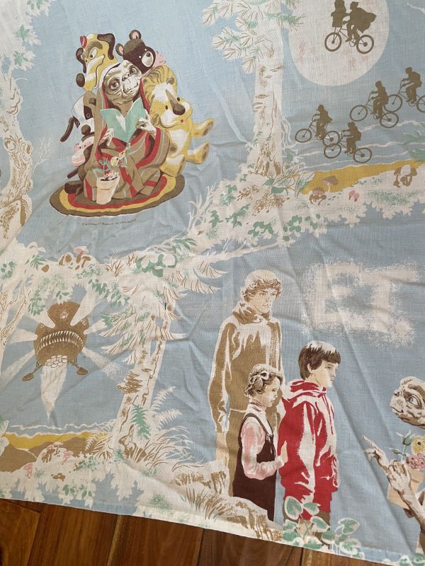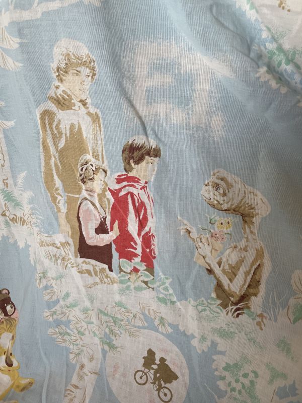 色褪せが見られます。ヴィンテージ シーツなのでそれなりに年季が入っています。ですがETはコレクターズアイテムでシーツも中々のレア商品です。是非いかがですか。