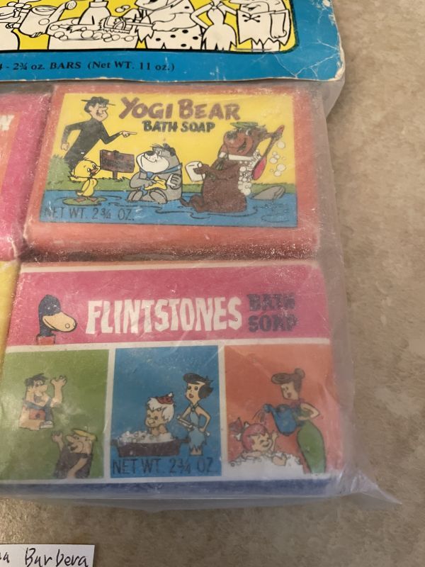 Hanna barbera Yogi Huckleberry,Flintstones 1976 soap set of 4 (B) / ハンナバーベラ ヨギ、ハックル、フリントストーン 袋入りソープ4個セット