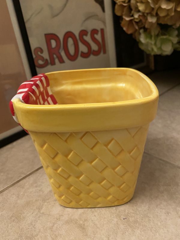 陶器製のバスケットの形をした入れ物? です。