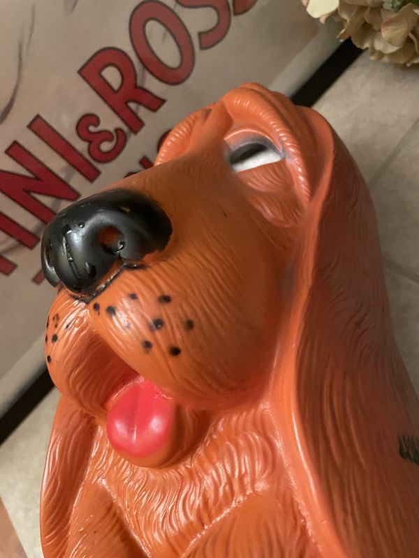 Orange Sad Eye Basset Hound Dog plastic coin bank 1971 / オレンジ、サッドアイ ドッグ プラスチック製 貯金箱 [VI2101]