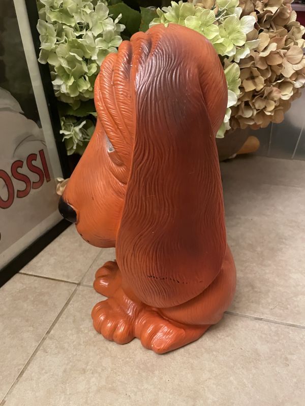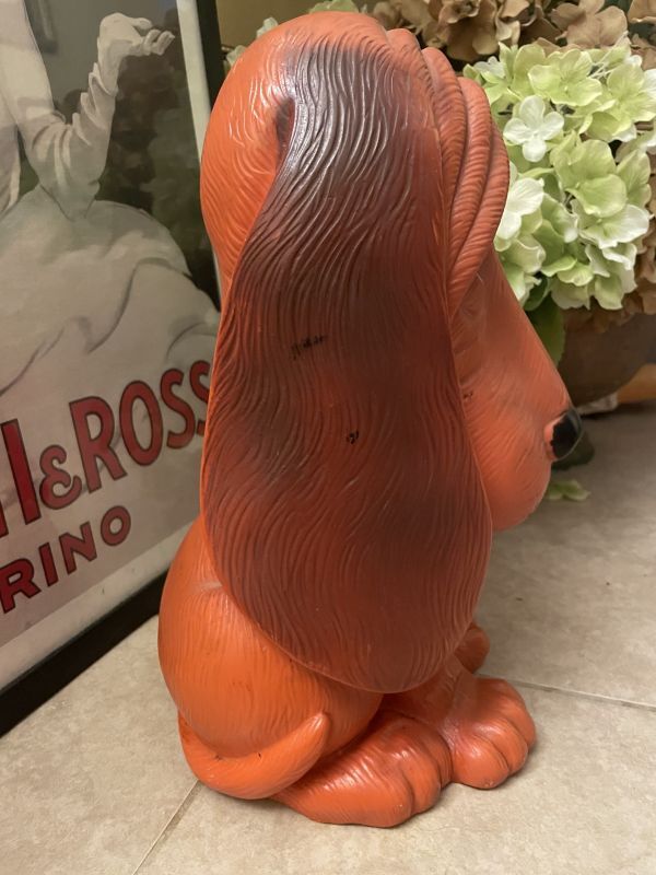 Orange Sad Eye Basset Hound Dog plastic coin bank 1971 / オレンジ、サッドアイ ドッグ プラスチック製 貯金箱