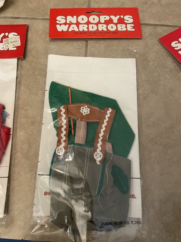 Snoopy plush doll 1968 & Wardrobe Clothes set / スヌーピー ぬいぐるみの洋服 & 袋入り洋服セット