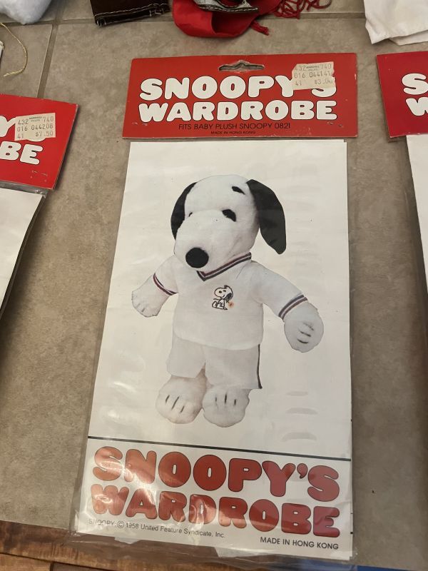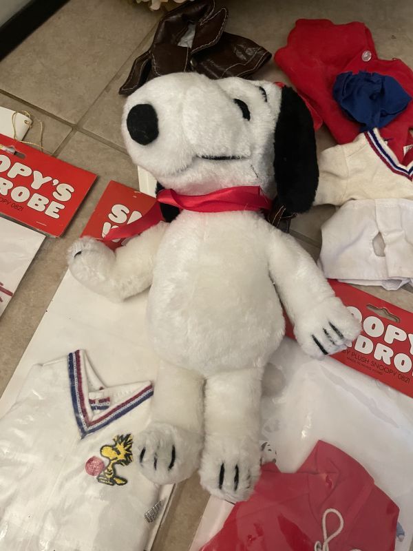 『Snoopy plush doll 1968 & Wardrobe Clothes set / スヌーピー ぬいぐるみの洋服 & 袋入り洋服セット』
