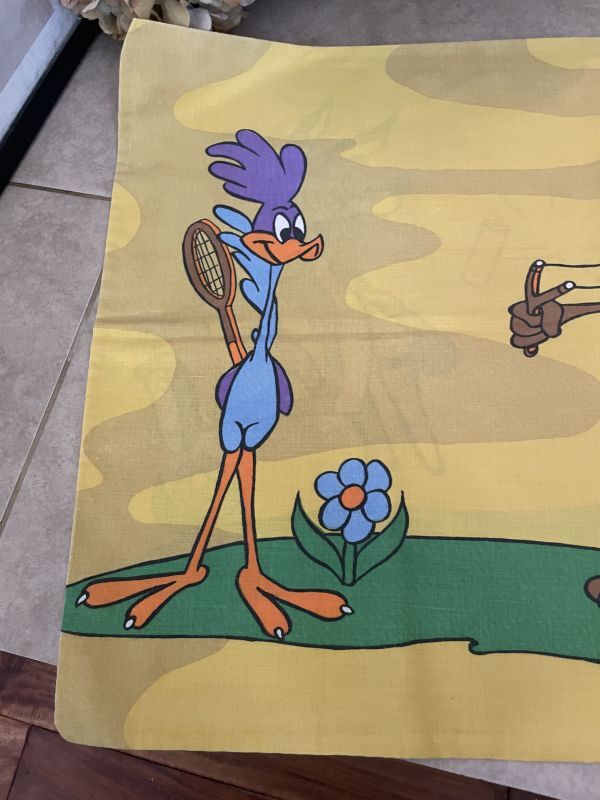 ロードランナーやワイリーコヨーテ達がイエローファブリックいっぱいに描かれています。