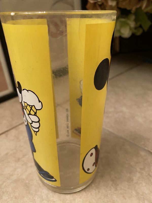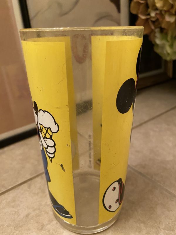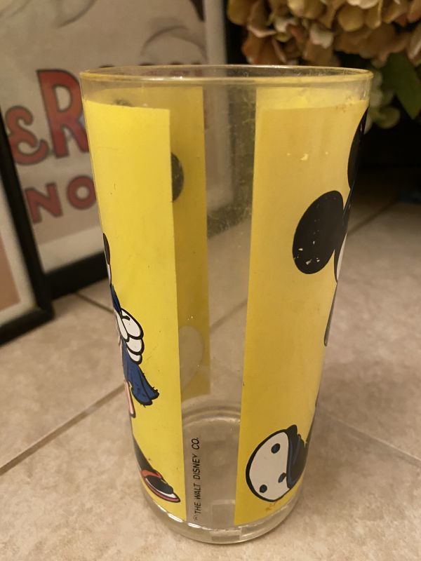 ミッキーマウスとミニーマウスのイラストの可愛いイエローカラーのプラスチック製タンブラーです。