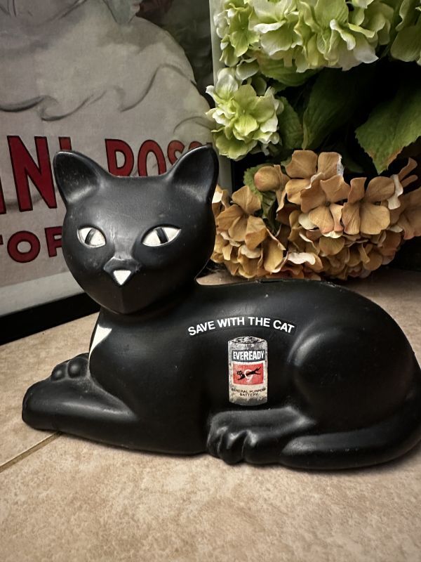 『Eveready Cat plastic coin bank 80’s / エバレディ、黒猫のプラスチック製貯金箱』