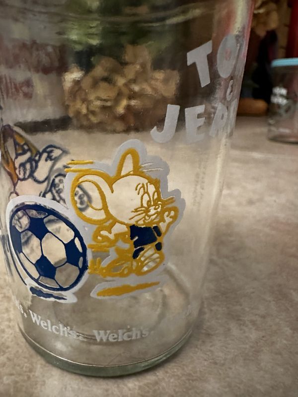 『Tom&Jerry Welch’s Soccer Glass with lid 1991 / ウェルチ トムとジェリー サッカー 蓋付きグラス』