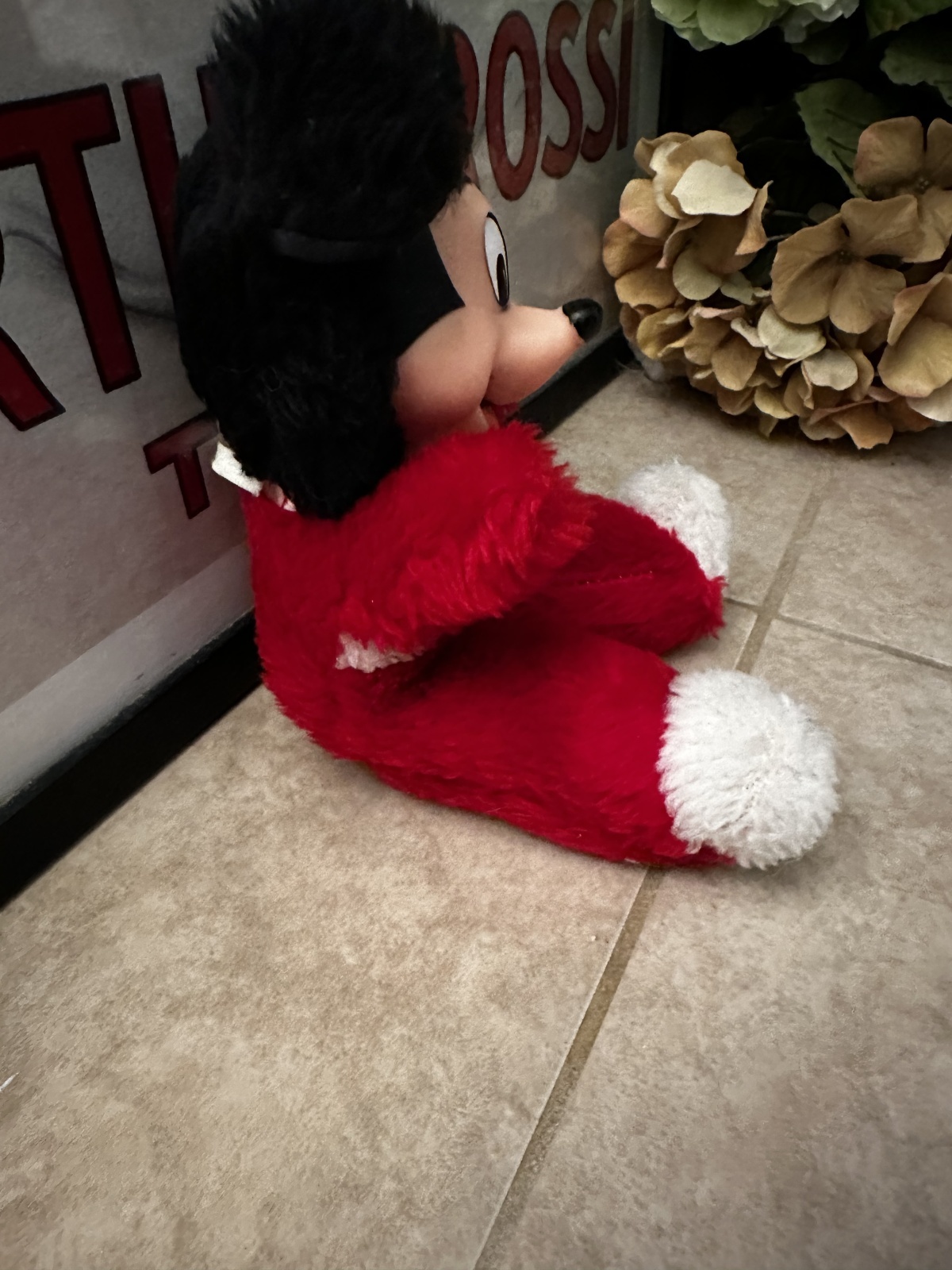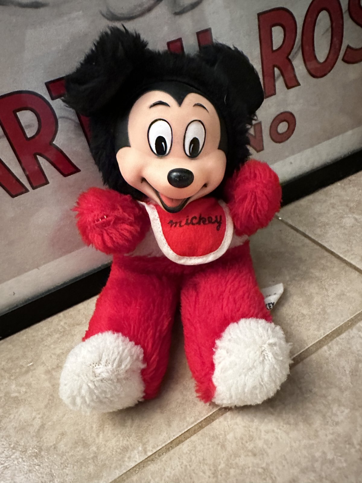 Disney Mickey Mouse Rubber Face Red plush Doll / ミニーマウスのラバーフェイス、レッドぬいぐるみ スタイ付き