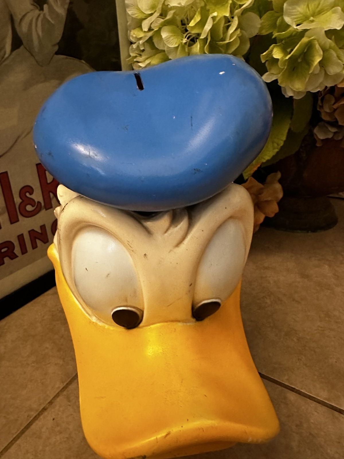 ドナルドダックの顔、フェイスコインバンク、1971年製です。