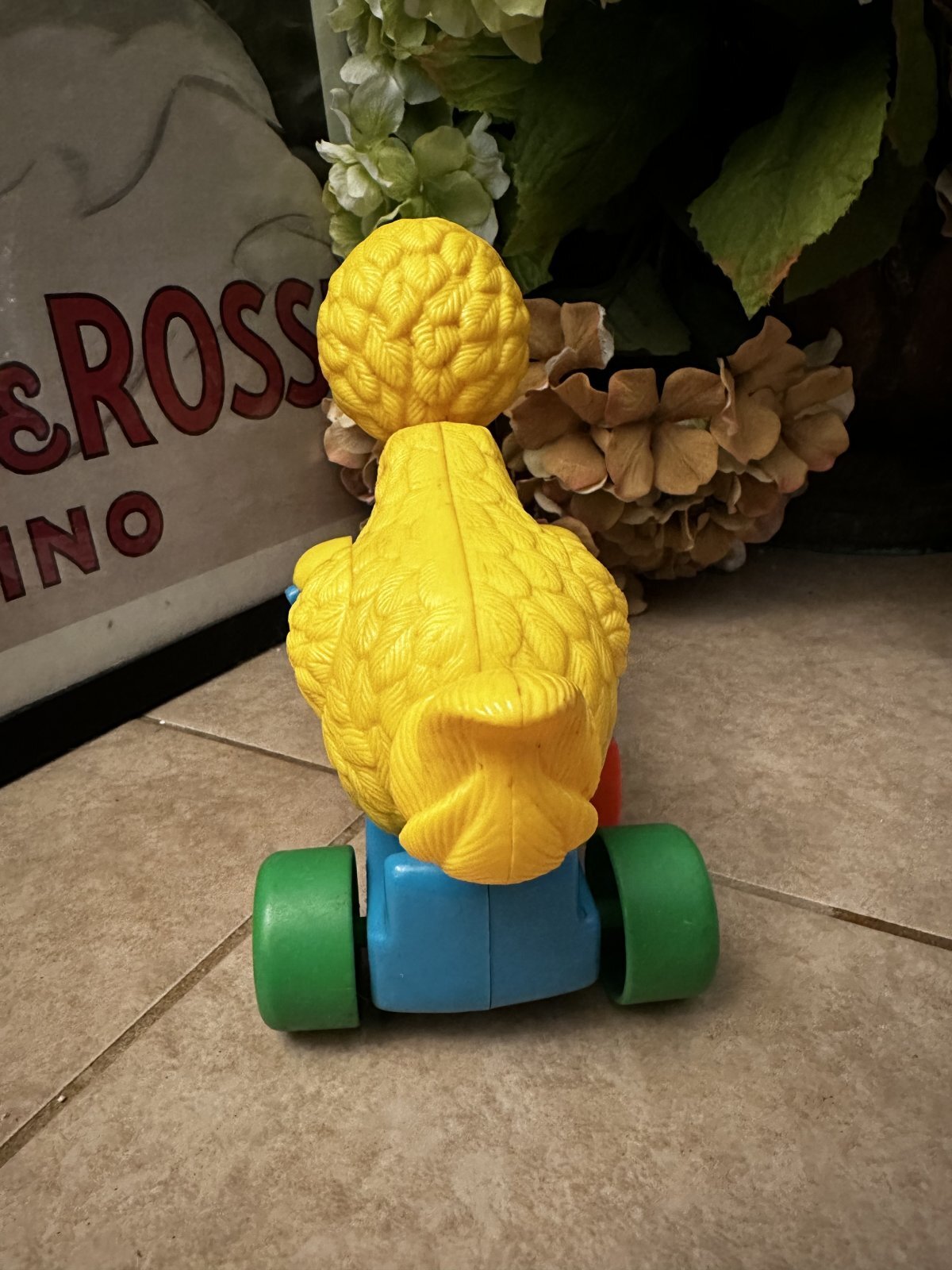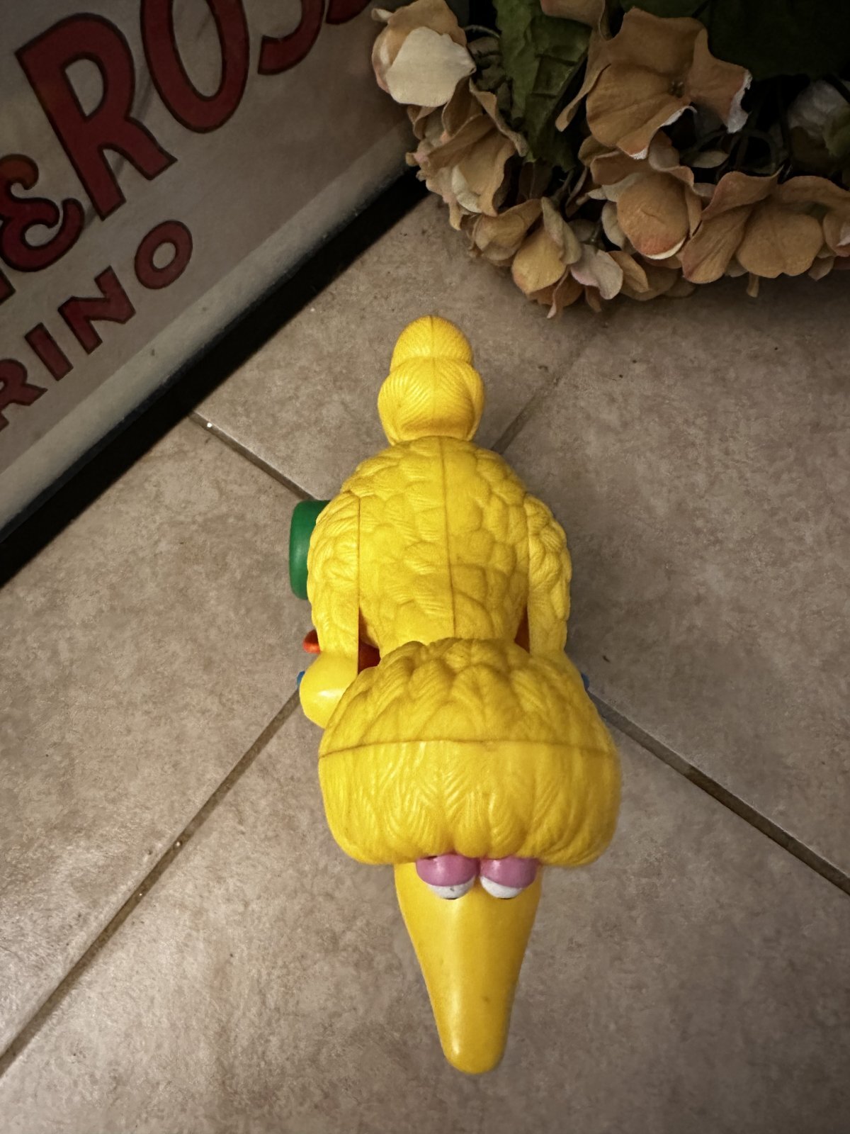 セサミストリートのキャラクター、ビッグバードが三輪車に乗った人形です。
