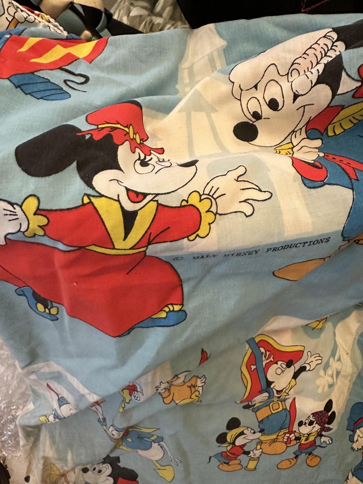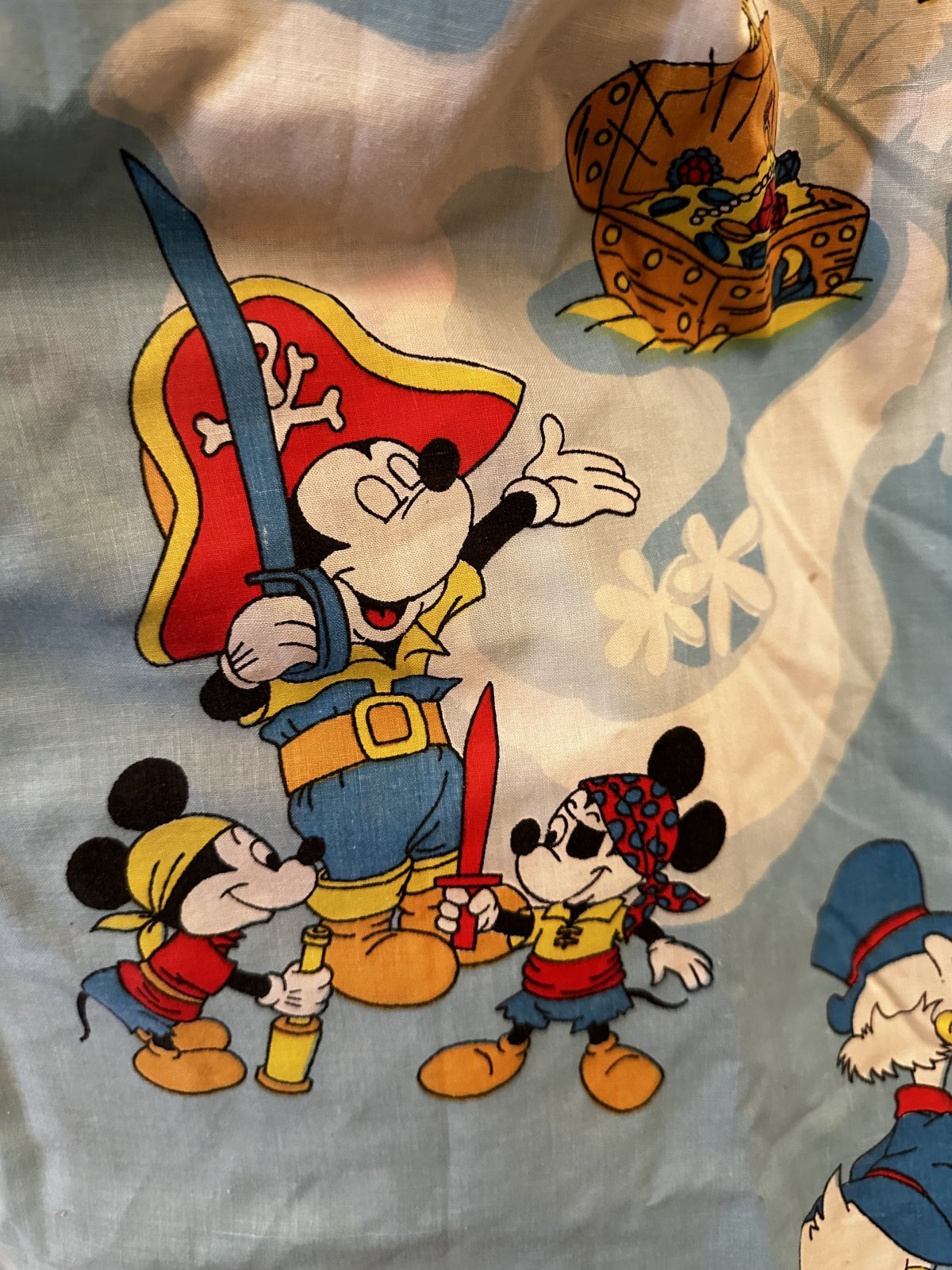 ディズニーのキャラクター、ミッキーマウスが全体に描かれているボックスシーツです。