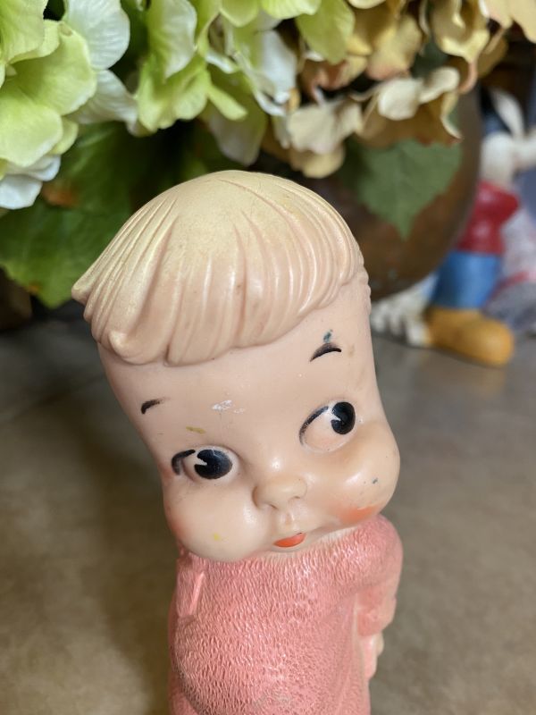 Pink Cloth Girl Dreamland Vinyl Squeak Doll / ドリームランド ピンクの洋服 おしり出してる女の子 ソフビ、ラバードール