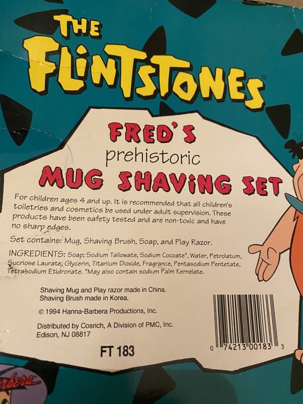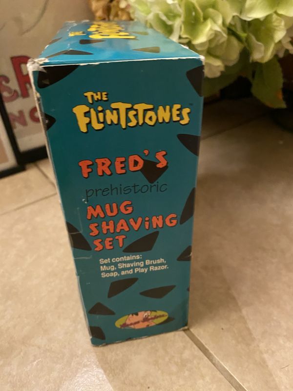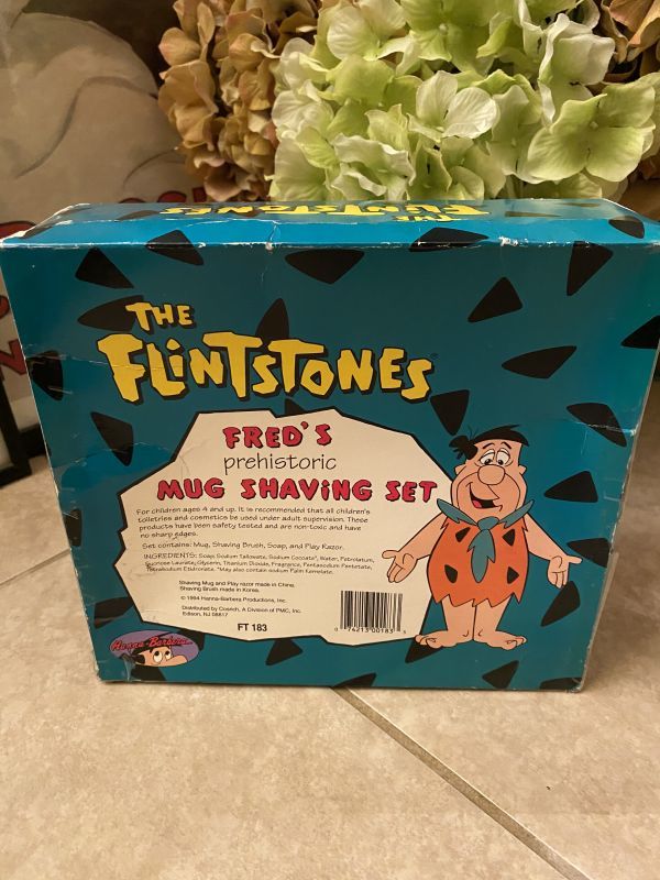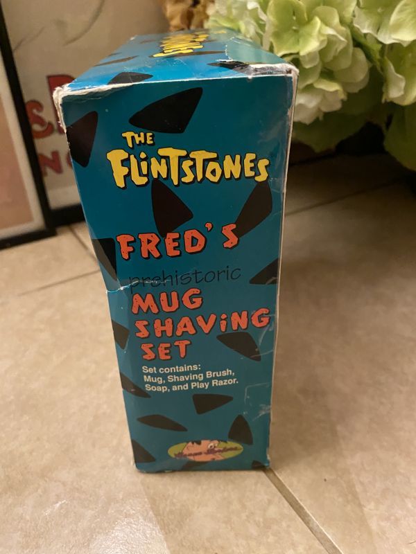 1994年のフリントストーンの箱入りマグ、シェービングセットです。