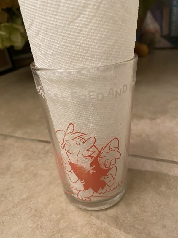 Hanna Barbera Flintstones Pink Fred&Barney Play Baseball Glass 1964 / フリントストーン、ピンク フレッド&バーニー 野球グラス (G)