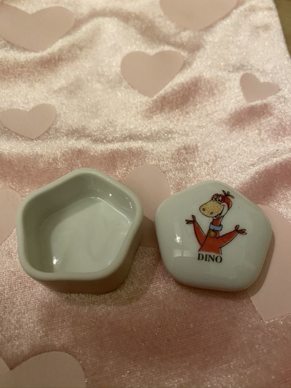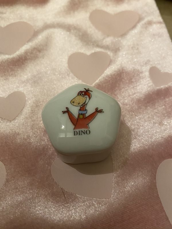 フリントストーンの可愛いキャラクター、ディノの陶器製ピルケースです。