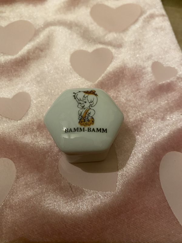 フリントストーンの可愛いキャラクター、バンバンの陶器製ピルケースです。