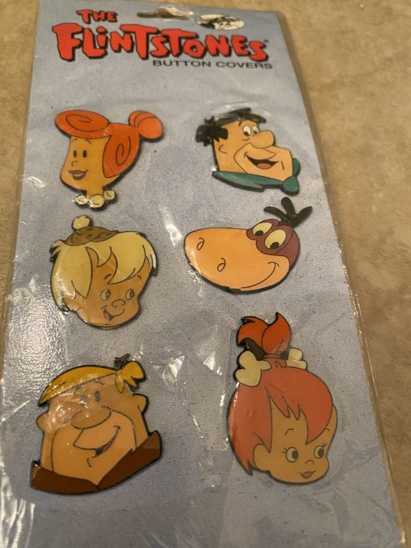 Hanna Barbera Flintstones Button Cover set of 6 / フリントストーン ボタンカバー 6個セット 未開封 1994