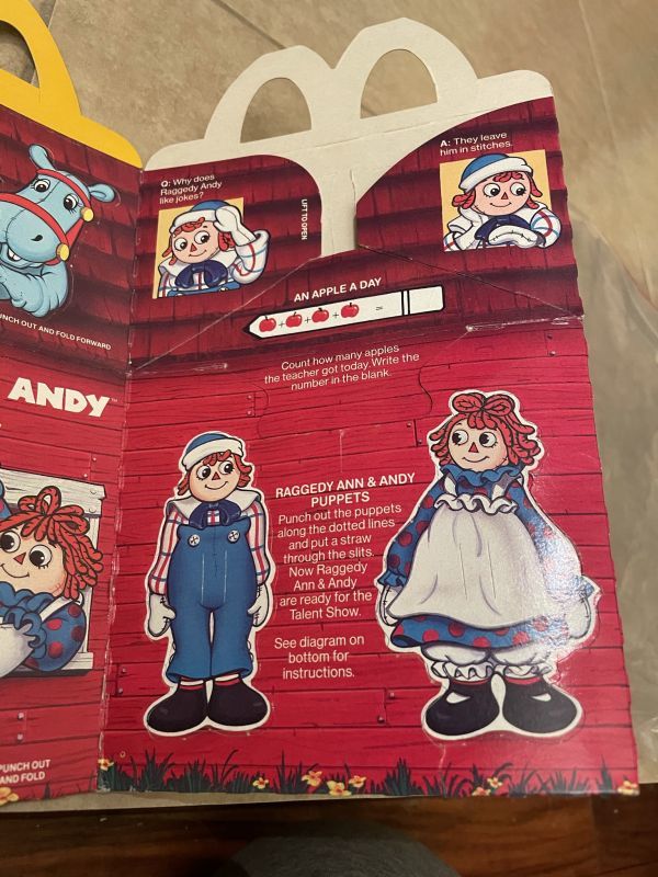 『McDonald’s Raggeddy Ann & Andy Box & Meal Toys / マクドナルドのラガディアン& アンディ 箱とミールトイセット1989年』