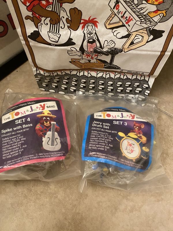 『McDonald’s Tom&Jerry Meal Toys (A) / マクドナルドのトムとジェリー 袋とフィギュア 3点セット1989年』