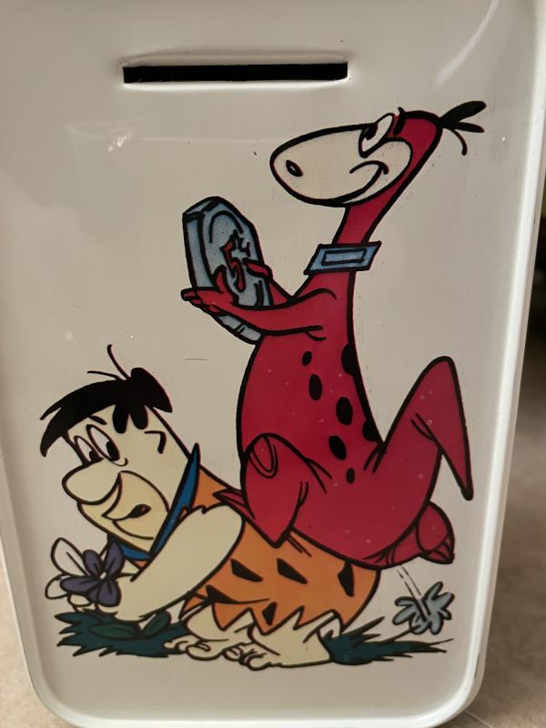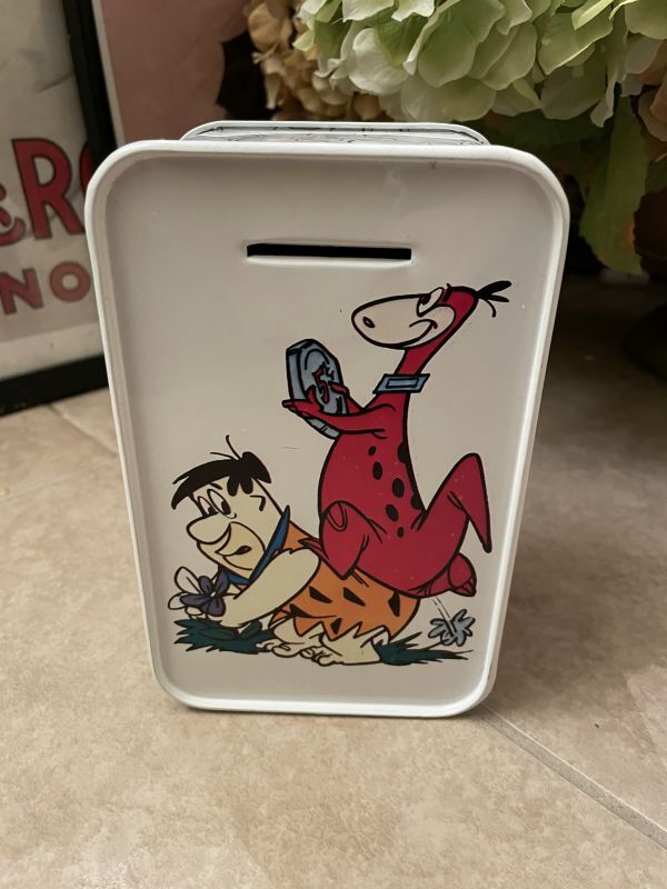 フリントストーンの可愛いキャラクター、ティン製のボックス型、貯金箱です。