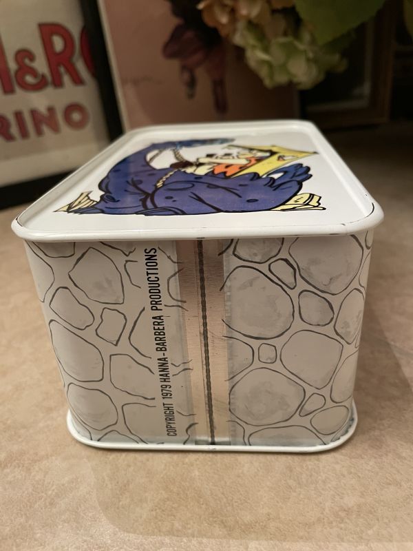 フリントストーンの可愛いキャラクター、ティン製のボックス型、貯金箱です。