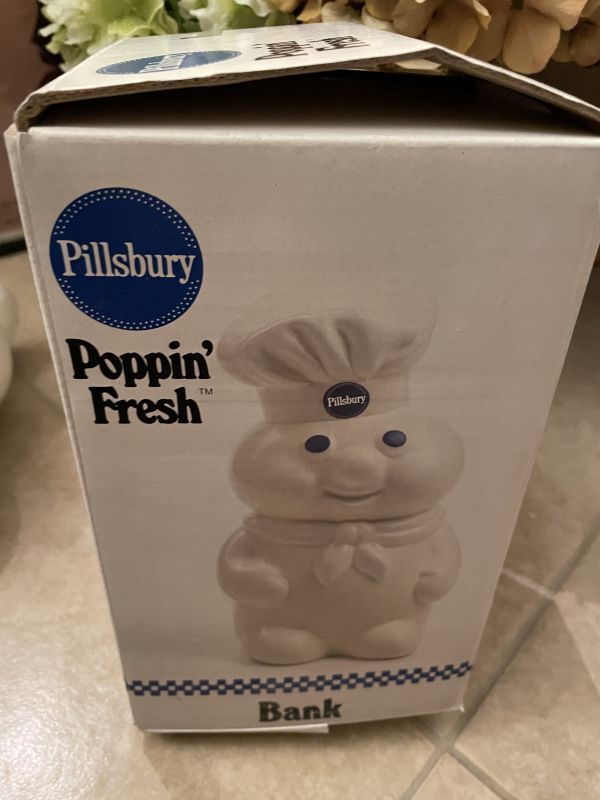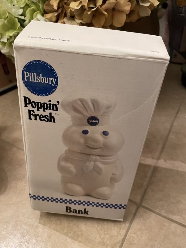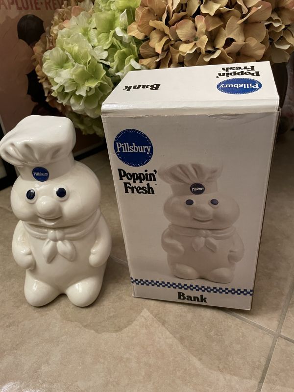 Pillsbury Dough Boy Ceramic Coin Bank With Box 1988 / ピルズベリー ドゥボーイ 箱入りの陶器製、貯金箱