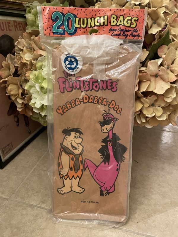 Hanna Barbera Flintstones Brown Paper Lunch Bags 1991 / フリントストーン 茶色 紙製 ランチバッグセット